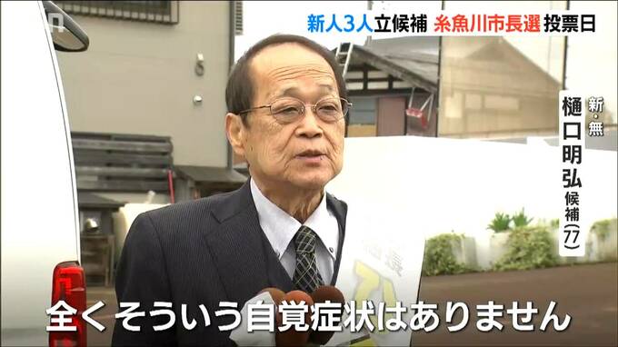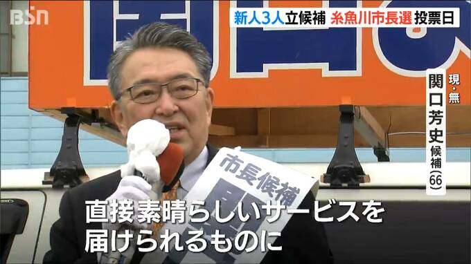 任期満了に伴う糸魚川市長選挙の投票が20日行われました。立候補しているのは届け出順に、伊藤麗さん(34) 久保田郁夫さん(67) 横山人美さん(59)のいずれも無所属の新人3人です。