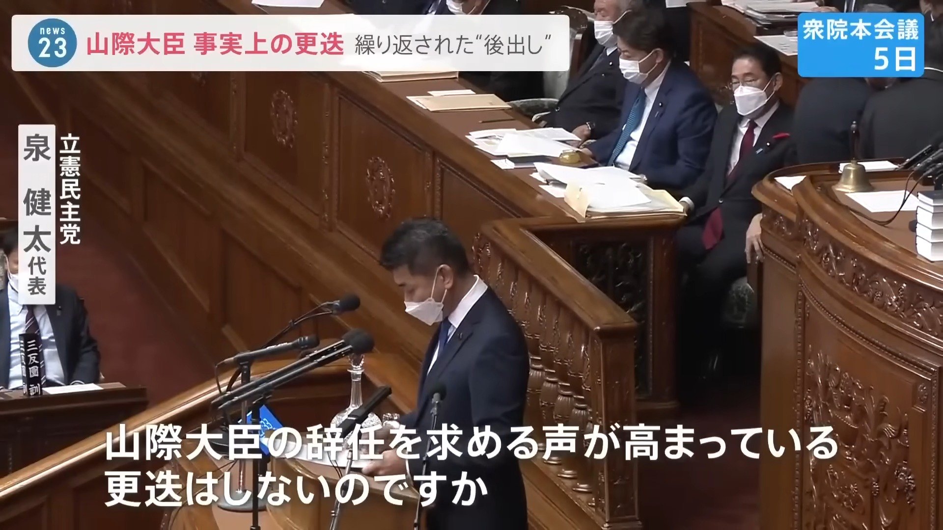 「山際大臣の辞任を求める声が高まっています。更迭はしないのですか?」