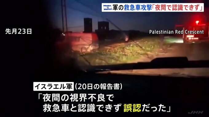 パレスチナ自治区ガザで、救急車が攻撃され15人が死亡した問題で、イスラエル軍は「夜間で、救急車だと認識できなかった」などとする報告書を発表しました。ガザ南部ラファで先月、救急車に乗っていたパレスチナ赤…