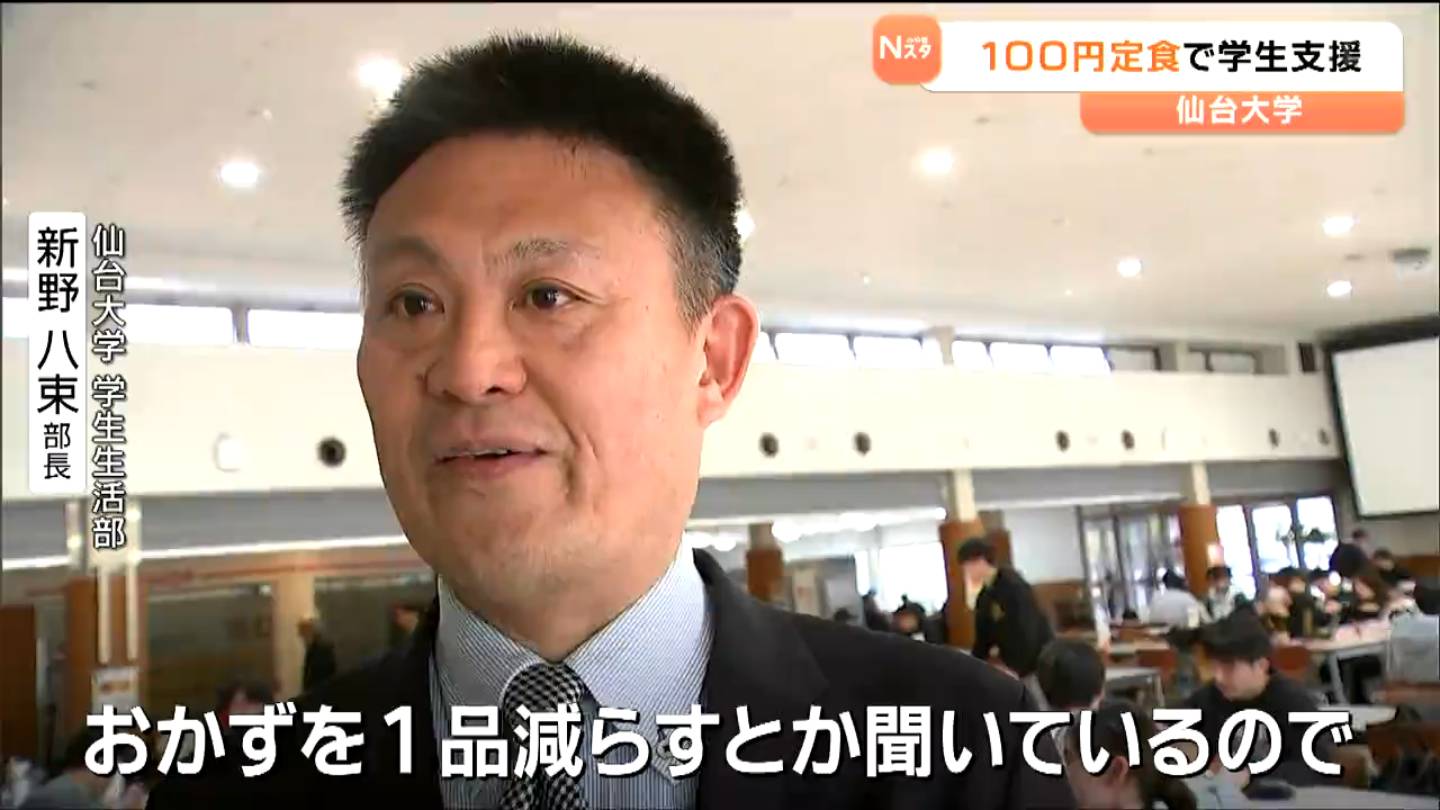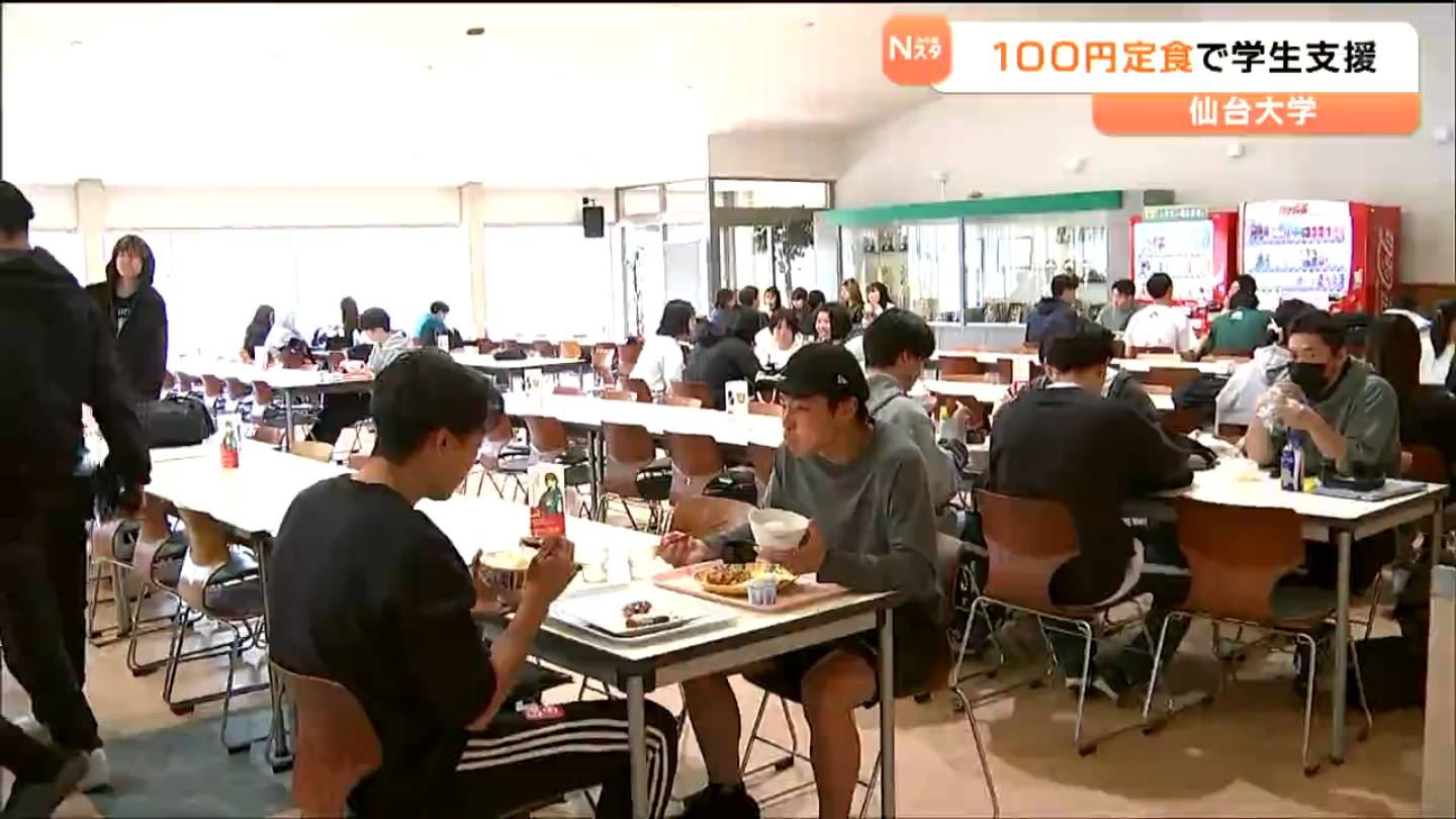食料品の価格高騰が続く中、学生の生活を支援しようと宮城県柴田町にある仙台大学が100円で定食を提供するサービスを始めました。今後は月2~3回のペースで100円定食を提供します。