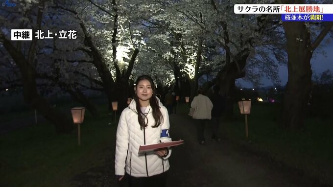 今まさに見頃を迎えている「桜の名所」から再び中継でお伝えします。北上展勝地から徳岡アナウンサーに伝えてもらいましょう。北上市にある桜の名所「北上展勝地」です。この時間冷え込みが強まり、桜並木を歩く人…