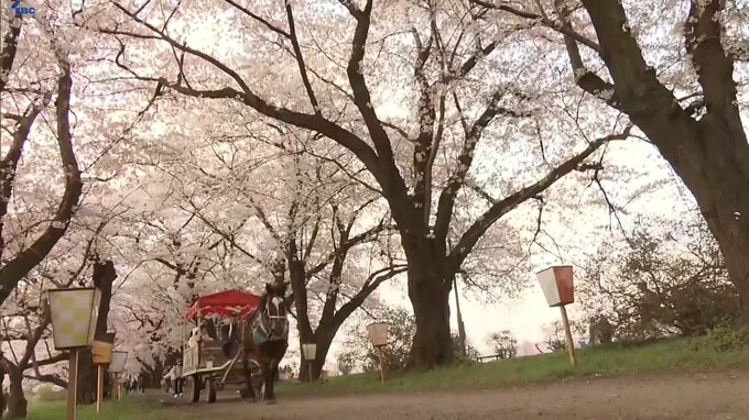 中でも人気なのが、農耕馬が引っ張る車両から桜並木をじっくり眺められる観光馬車です。家族連れや外国人観光客なども一緒になって楽しんでいました。