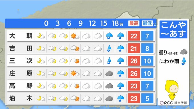 22日(火)徐々に天気は下り坂 夜には本降りの雨に 雨脚が強まる所も