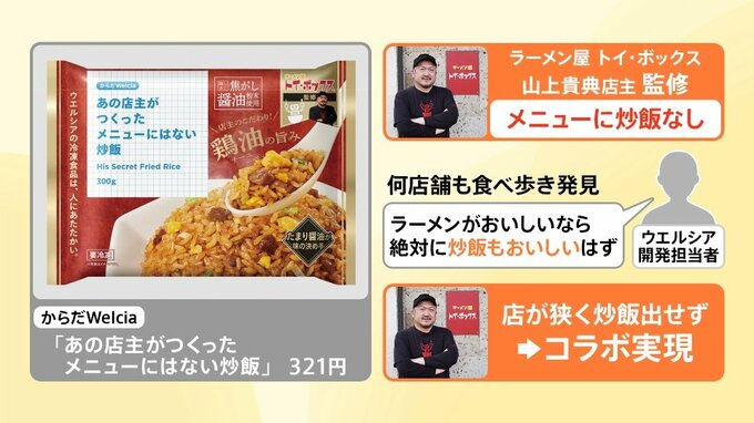 山上さんのお店には炒飯のメニューはありません。「ウエルシア」の開発担当者が何店舗も食べ歩き、「ラーメンがおいしいなら絶対に炒飯もおいしいはず」と発見し、山上さんにお願いしたそうです。