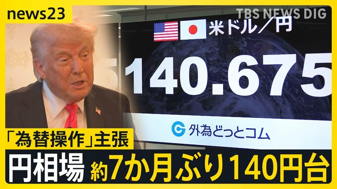 円相場が1ドル=140円台となり、およそ7か月ぶりの「円高水準」となりました。この為替についてもトランプ氏の発言が要因となっています。大統領就任から20日で3か月が経ったトランプ氏。週末にはゴルフウェアに身…