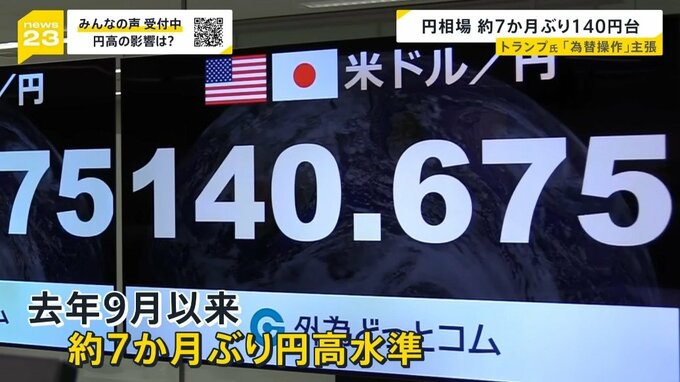 円相場が1ドル=140円台となり、およそ7か月ぶりの「円高水準」となりました。この為替についてもトランプ氏の発言が要因となっています。