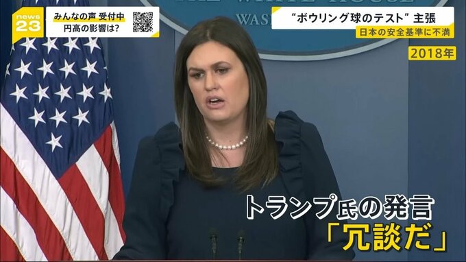 現実には、こうした安全検査は存在せず、当時ホワイトハウスは、トランプ氏の発言について「冗談だ」と弁明していました。