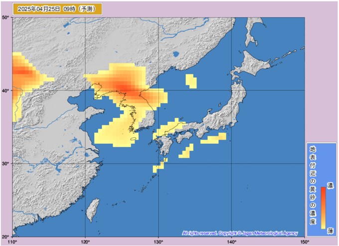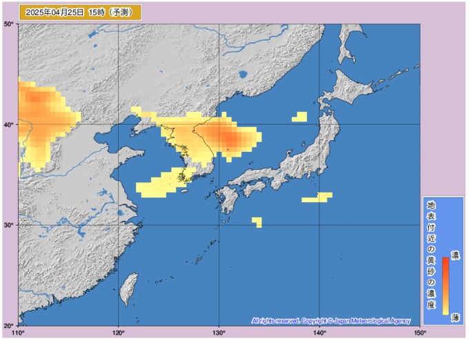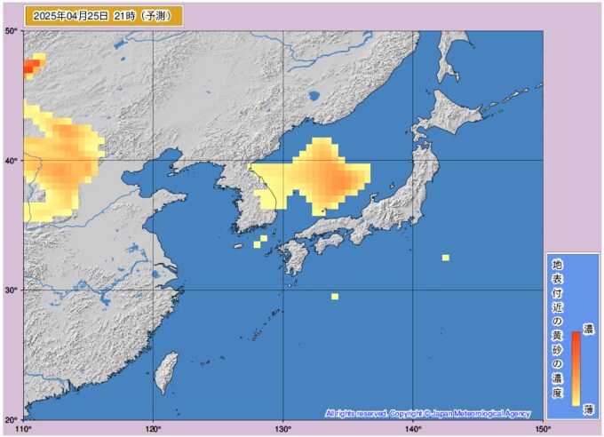 黄砂情報 24日~25日に黄砂飛来 西日本の広い範囲に影響か 気象庁