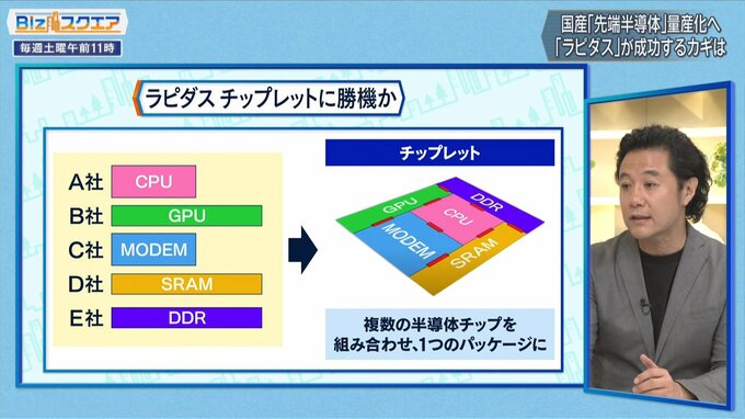 「1個のチップで複数の半導体の機能を持たせるのがこれからの技術として期待されていて、おそらくラピダスはこれをやってくる。全く新しいこれからの時代に合った新世代の半導体を作ってくる。これができると、かなり世界からの需要はあるだろう」