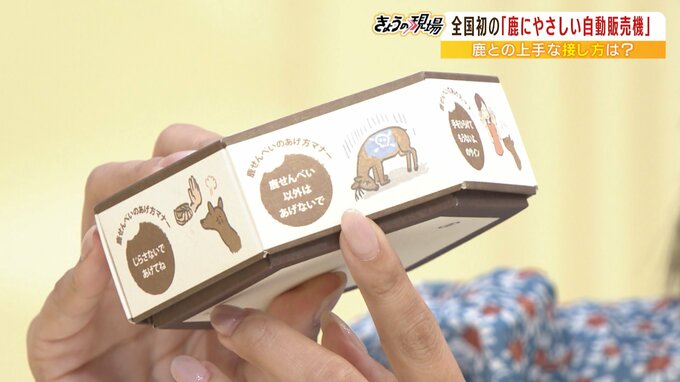 “鹿せんべいのあげ方マナー”を箱に記載…鹿と人間との共存へ