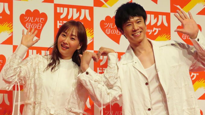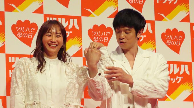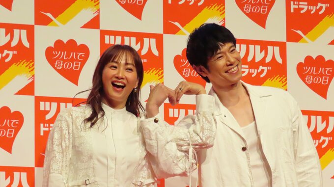 22日、タレントの藤本美貴さんとお笑いコンビ「品川庄司」の庄司智春さん夫妻が「ツルハで母の日 記者発表会」に登壇しました。
