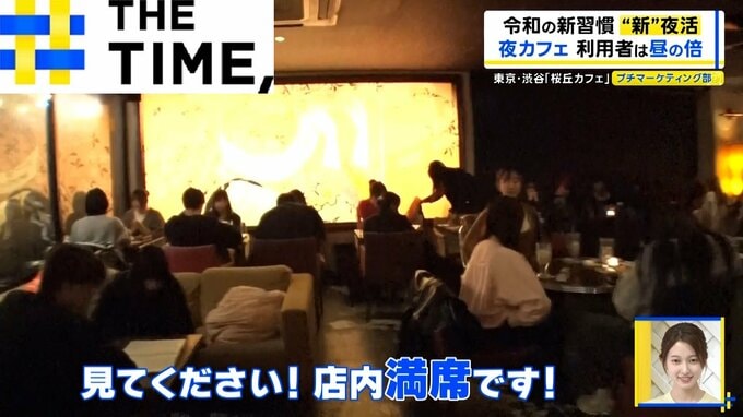 東京・渋谷にある『桜丘カフェ』では夜8時でもスイーツやコーヒーを楽しむ人で満席。