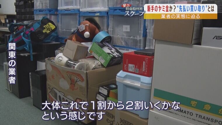 しかし、取材を続けると、ついに“ある関東の業者”が取材に応じた。この買い取り業者は約2年前から先払い買い取りを行っている。ヤミ金であるならば商品を買い取らないはずだが、事務所の中には山積みの商品があった。