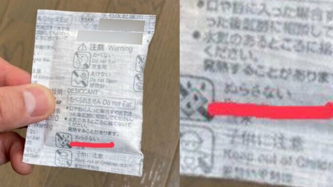 滝沢秀一さんは、「乾燥剤の石灰系は気をつけた方がいいです。」と投稿。