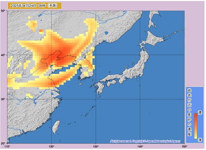 黄砂情報 26日は本州全域に飛来か 24日~25日は西日本中心が飛来エリアに どこに飛んでくるかを画像で確認 気象庁発表