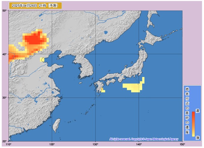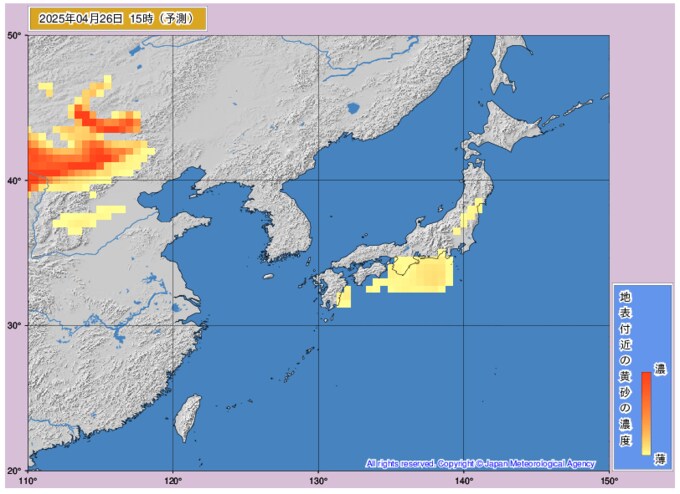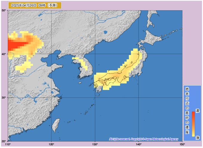 黄砂情報 26日は本州全域に飛来か 24日~25日は西日本中心が飛来エリアに どこに飛んでくるかを画像で確認 気象庁発表