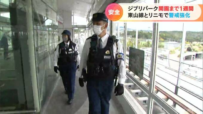 11月1日にジブリパークが開園すると、全国各地から大勢の観光客が訪れると予想されるため、名古屋駅からジブリパークの最寄り駅であるリニモの愛・地球博記念公園駅までの警備を25日から強化しました。