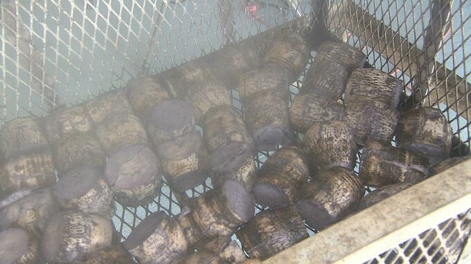 金城真海さん24歳。この日、夫・貴興さんと共に行っていたのは、出荷前の最後の作業「芋炊き」。