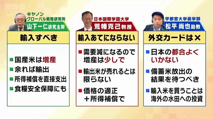 「輸入米に頼る」ではダメなのか…3氏の見解