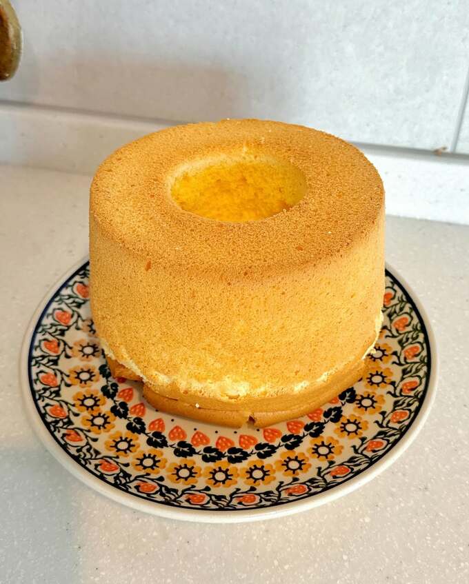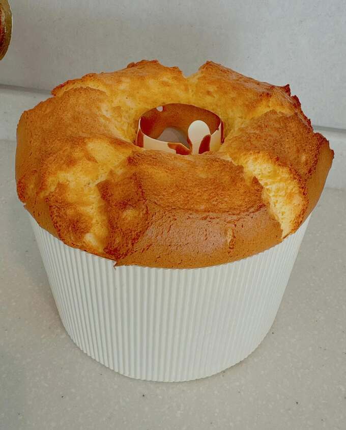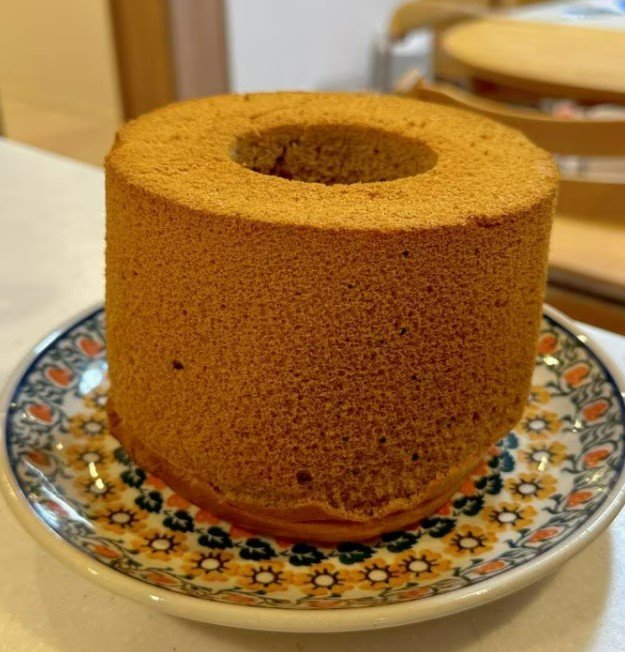 投稿された画像では、美味しそうに焼き上がったシフォンケーキが見て取れます。