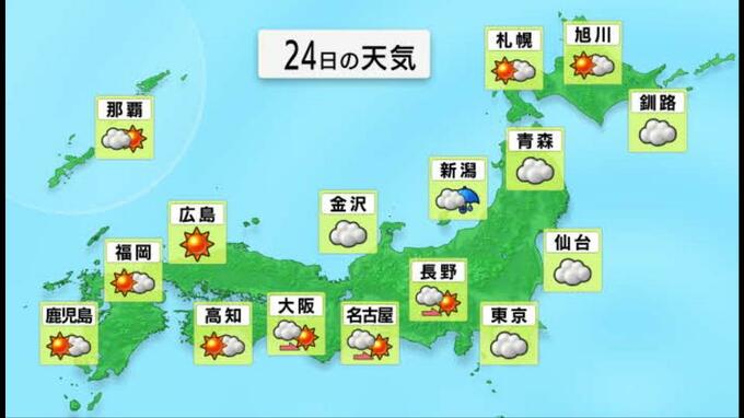 25日の道内は、天気が崩れるため、少し汚れた雨になるかもしれません。