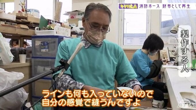 幾多の過酷な火災現場をくぐりぬけ、多くの人を守り抜いてきた消防ホース。財布に生まれ変わることで使う人の財産を守るという新たな使命がスタートします。