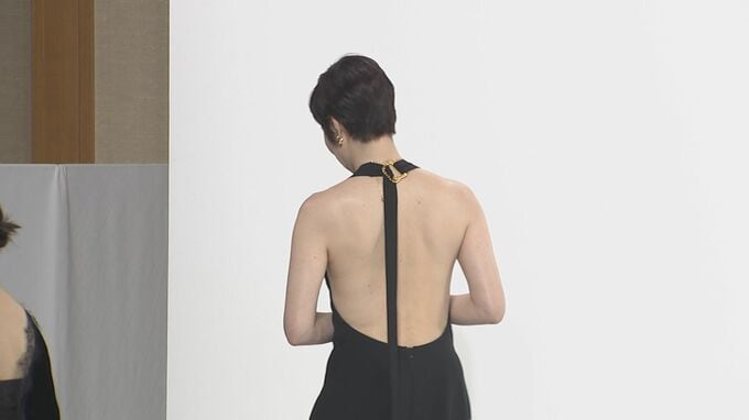 この日、登壇した女性陣でもひときわ大胆に露出したドレスで登場した寺島さんは、人間国宝・七代目 尾上菊五郎を父に持つ、名門「音羽屋」の長女。劇中では半二郎が喜久雄を引き取ることに反発しますが、才能に気づき育てていく梨園の妻・大垣幸子を演じています。