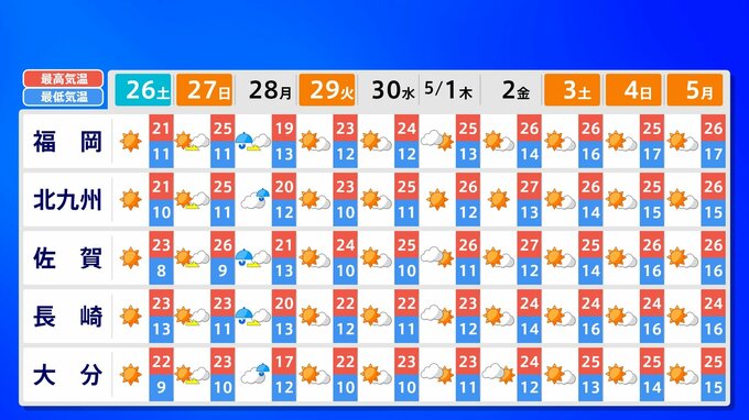 【ゴールデンウィーク2025天気予報】晴れ多いが雨の日も 東京 大阪 名古屋 福岡 GW後半かなりの高温 最大11連休【全国54地点GW天気 / 雨はいつ どこで】雨のシミュレーション28日(月)~29日(火祝)