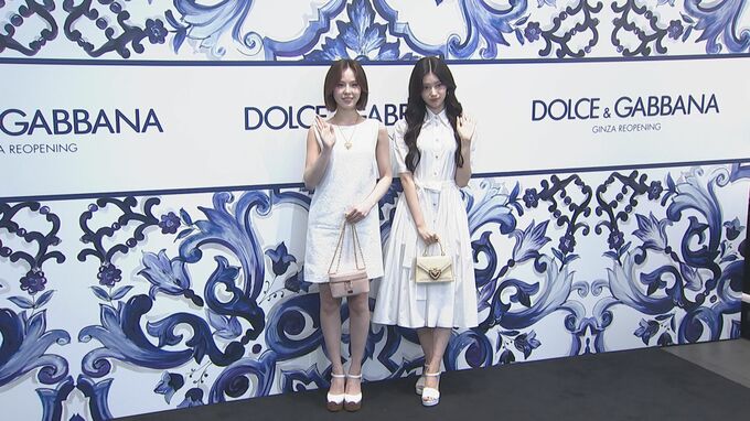 NiziUのメンバー、MAKOさんとRIMAさんが、「ドルチェ&ガッバーナ 銀座 リニューアルオープンイベント」に来店しました。