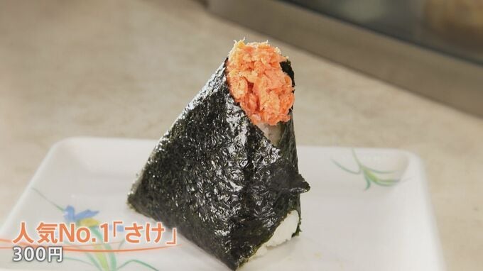 さらに「新潟産コシヒカリ」は数日前に収穫したばかりの新米です。そんなお米と具材で作る一番人気は定番の「さけ」300円。