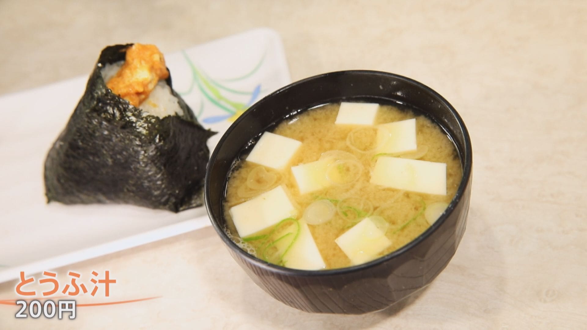 ふわふわの絶品おにぎりは、盛りだくさん!定番のトッピング「豚キムチ+納豆」(400円)や遊び心抜群の「ペペロンチーノ」(400円)などどれもこだわりの味が楽しめます。おにぎりのお供にはおかわり自由の「みそ汁」も人気。