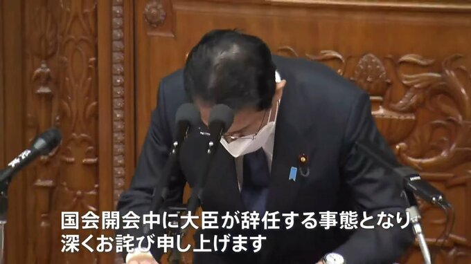 「国会開会中に大臣が辞任する事態となり、深くお詫びを申し上げます」