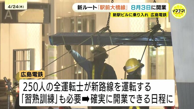 広島電鉄の仮井社長は、開業に向けて6月の上旬から「試運転」をはじめるとしました。その後、250人の全運転士が新路線を運転する「習熟訓練」が必要なため、確実に開業できる日程にしたということです。