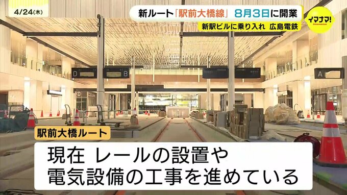 新しい広島駅ビルに乗り入れる日が決まりました。広島電鉄は、路面電車の新ルート=「駅前大橋線」が、8月3日に開業することを明らかにしました。