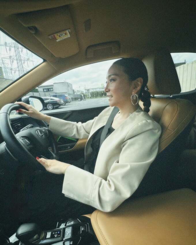 奈々さんは「加藤綾菜ちゃんが車で迎えに来てくれました」と、両手ハートの絵文字を添えて投稿。写真では、黒のカットソーにベージュのジャケットを合わせ、髪を後ろにまとめた加藤綾菜さんがタンレザーのシートにゆったりと座り、高級車のハンドルを駆っている姿が投稿されています。