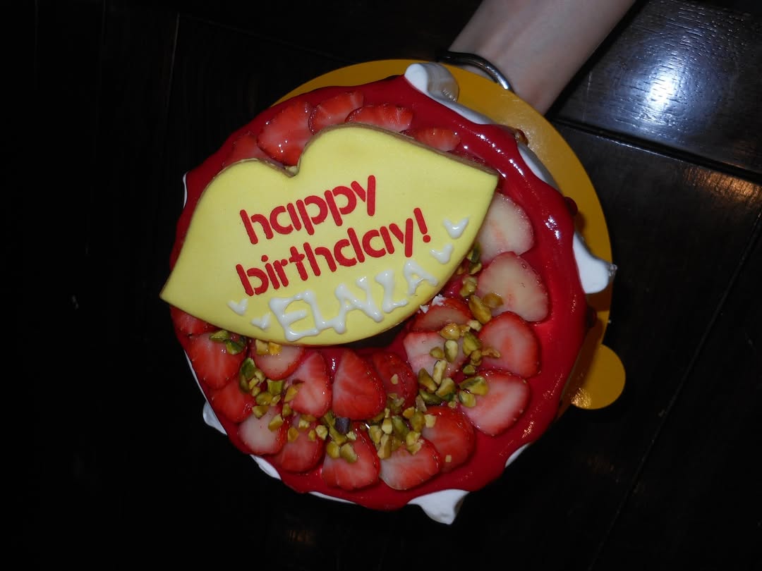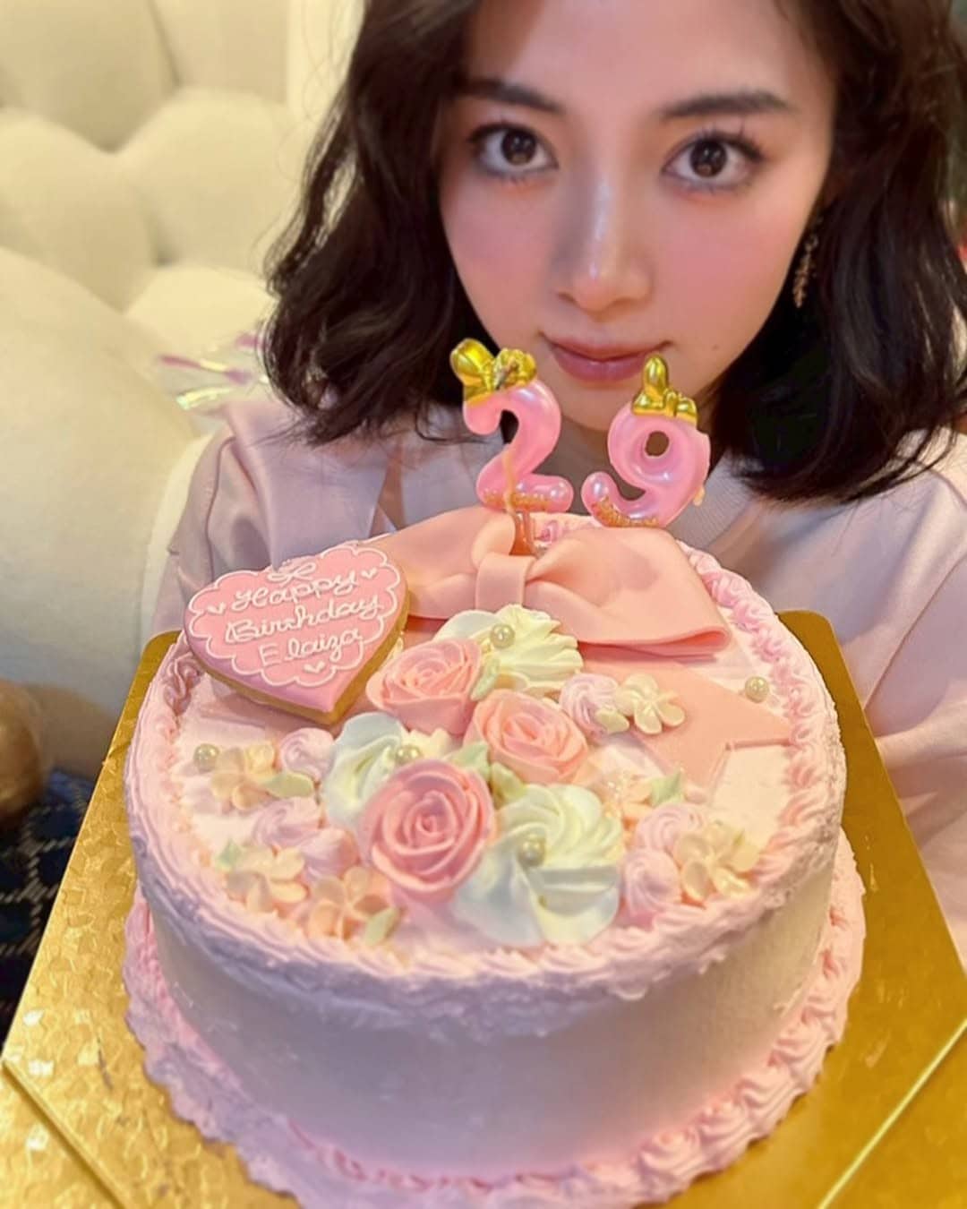 最後に、6月に公開される映画の制作チームから贈られたケーキを披露。いちごがぎっしり並べられた上に唇の形をした大きな黄色のプレートが置かれ「happy birthday! ELAIZA」とメッセージが入っています。「マネージャーさんが名前書いてくれた」「スタッフの皆さんが照れてて可愛かった」と振り返っています。