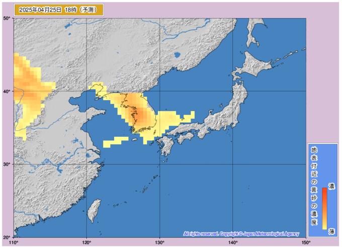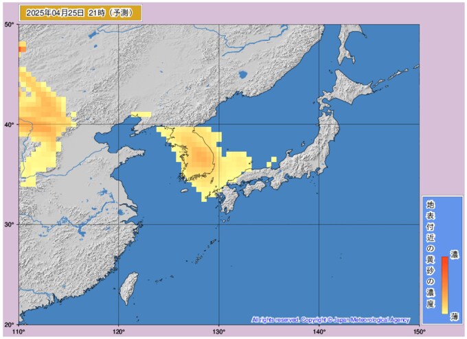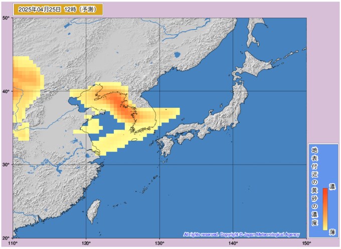 黄砂情報 25日以降西日本に黄砂飛来 28日にかけて、いつどこに黄砂が来るかをシミュレーション画像で確認・黄砂の解説も 気象庁発表 テレビユー山形 2025年4月25日(金) 09:03 国内 ■25日