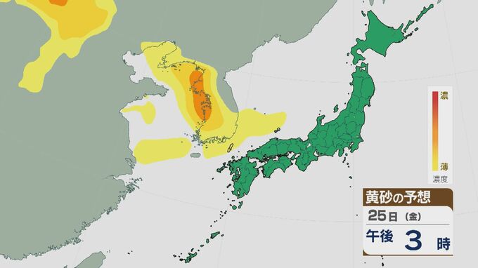 【黄砂情報】大陸からの黄砂は25日(金)夜遅くから26日(土)午前中にかけ西日本に飛来の見込み 最新の飛来シミュレーション