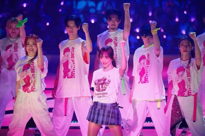 浜崎さんは、アジアツアー2025の初回公演のステージと思われる写真を数枚投稿。いずれの写真でも、自身のマークが大きく胸にプリントされたTシャツを着てチェックのミニと厚底のブーツを合わせたコーデで、「AYUMI HAMASAKI」と自身の姿がプリントされたTシャツを着たダンサー達を背後に従えて歌い踊っています。