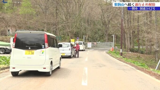 通行止めとなっていた一関市厳美町の国道342号・真湯ゲート前には開通を待つ車の列ができていました。