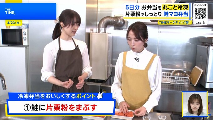 ⇒片栗粉には保水効果があり、レンジで解凍してもパサつきにくく「片栗粉を使うのが冷凍弁当を美味しく食べるためのポイント」(おすぎさん)