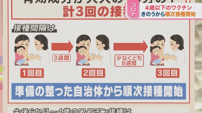 10月24日から、生後6か月〜4歳を対象とした新型コロナのワクチン接種が始まりました。使用されるのはファイザー社のワクチン。有効成分が大人の10分の1なので、合わせて3回の接種が必要になります。