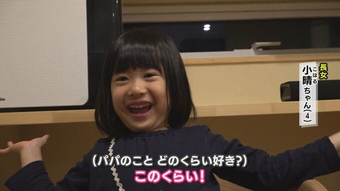 「(パパのことどのくらいすき?)(手を大きく広げて)このくらい」