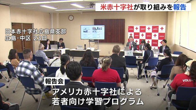 日本赤十字社広島県支部で開かれたのは、アメリカ赤十字社による若者向け学習プログラムの報告会です。