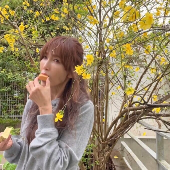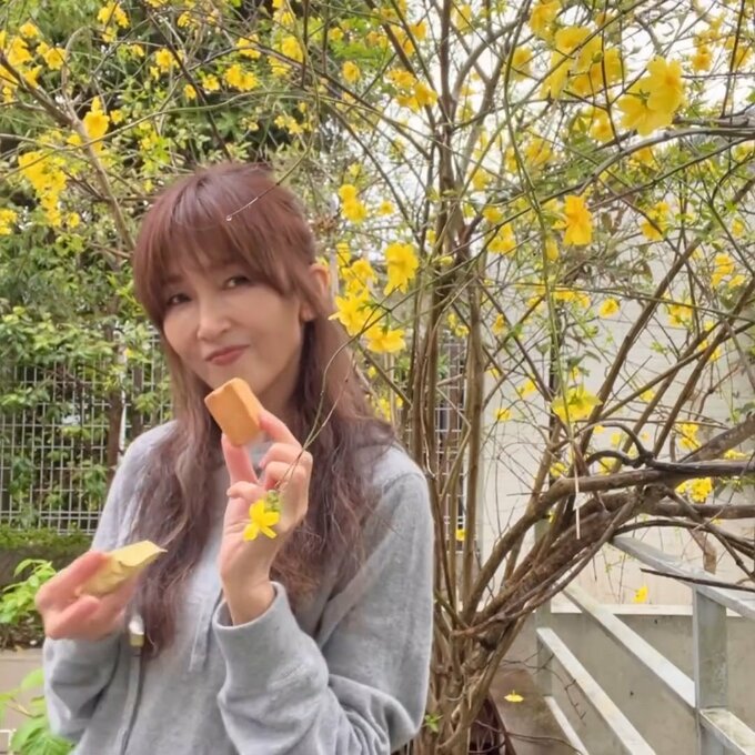 歌手の工藤静香さんが、インスタグラムを更新。お気に入りのパイナップルケーキを片手にほほえむ写真と、そのパイナップルケーキをほおばる動画を投稿しました。