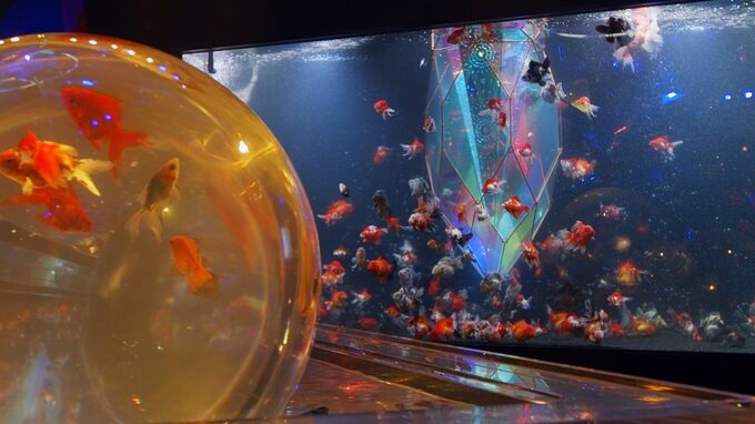「沖縄金魚ミュージアム」では、55種類、約2000匹の金魚が8つのエリアで展示されています。