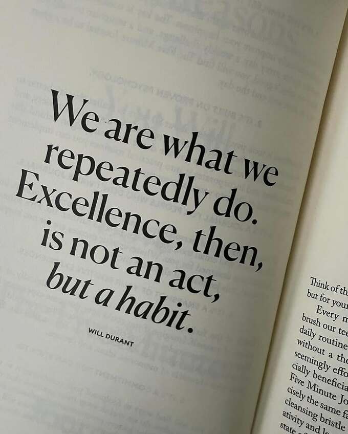 希良梨さんは、ある英文のページの接写を投稿。 “We are what we repeatedly do. Excellence, then, is not an act, but a habit.” (我々を成すのは、我々が習慣として為していることである。つまり、優秀さとは一時の行動ではなく、習慣である。) と書かれています。日本では「西洋哲学物語」という題名で出版されている書物 “The Story of Philosophy” の著者、ウィル・デューラントによる言葉です。希良梨さんは、この「習慣」に自身の「ルーティン」をなぞらえているものと思われます。