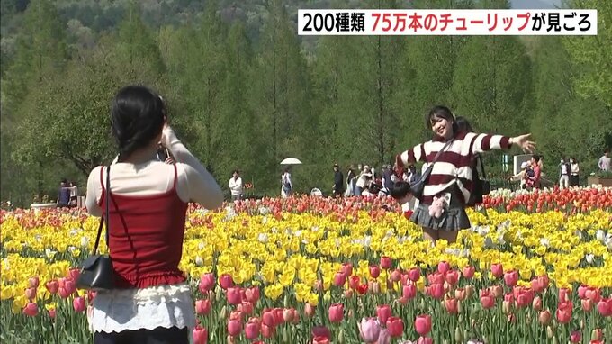 世羅町にある観光農園・世羅高原農場ではおよそ75万本のチューリップが見ごろとなっています。