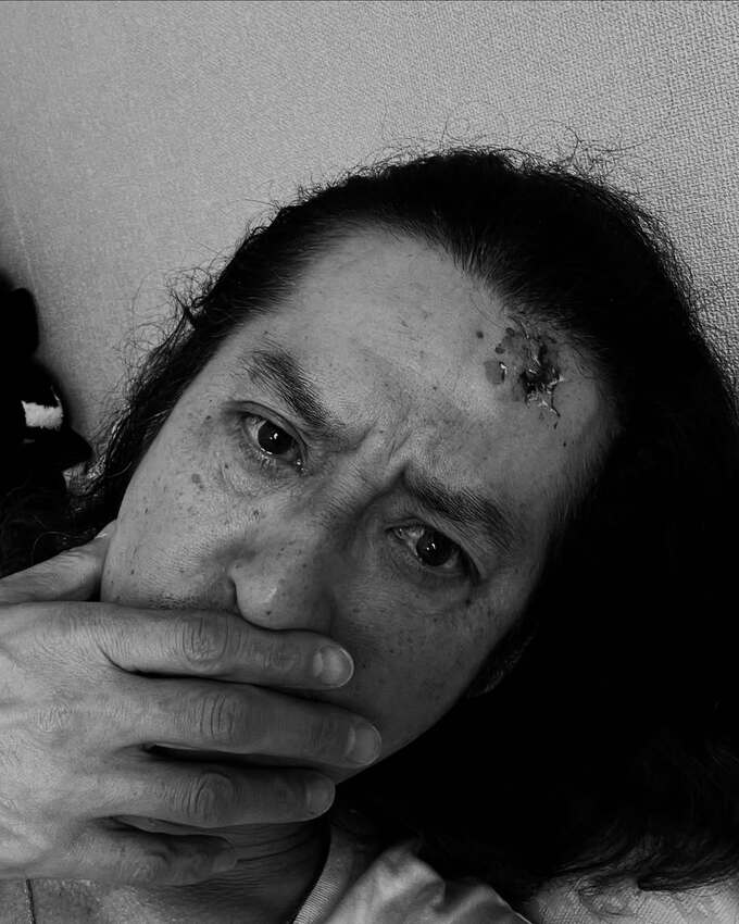 更に、大沢樹生さんは「その1週間後にチャリ のカゴに水1ケース載せててバランス崩してジャリコンクリートにデコから突っ込んでコケたのよ。」と綴ると、額に痛々しい傷跡が残る写真をアップ。