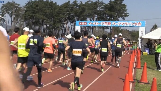 春の花巻市内をランナーが駆け抜けるハーフマラソン大会が、27日行われました。「イーハトーブ花巻ハーフマラソン大会」は花巻市の日居城野陸上競技場を発着点にハーフ、10キロ、3キロの3つの部門に3000人がエント…